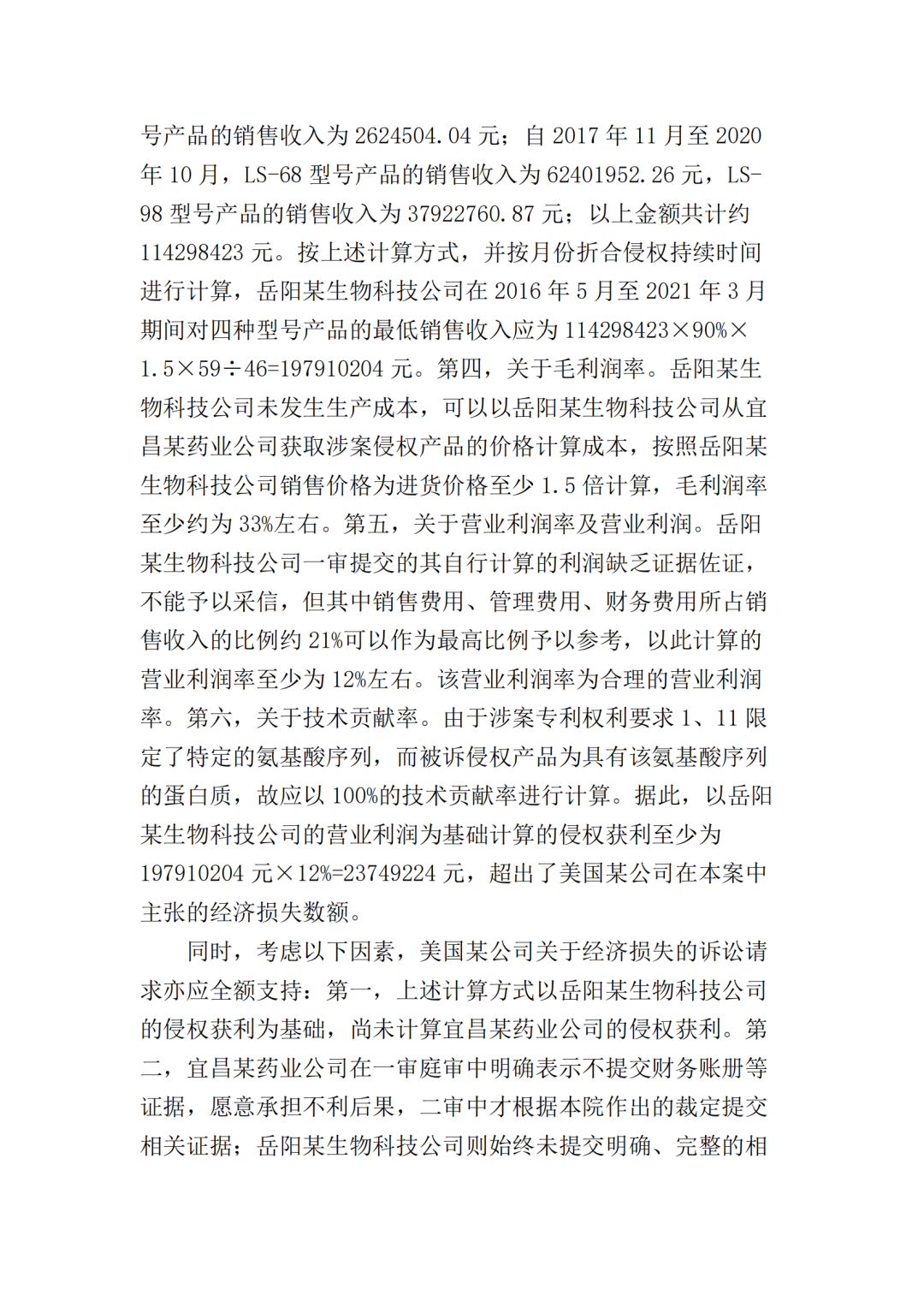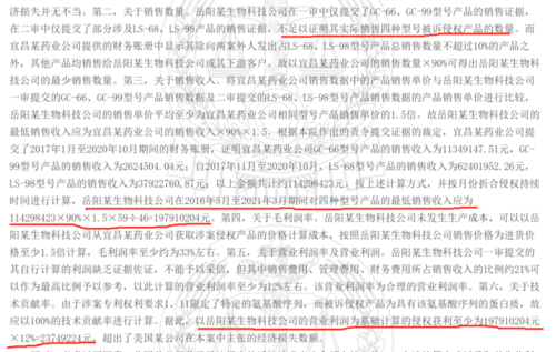 “岳阳某生物公司侵权获利至少23749224元。”