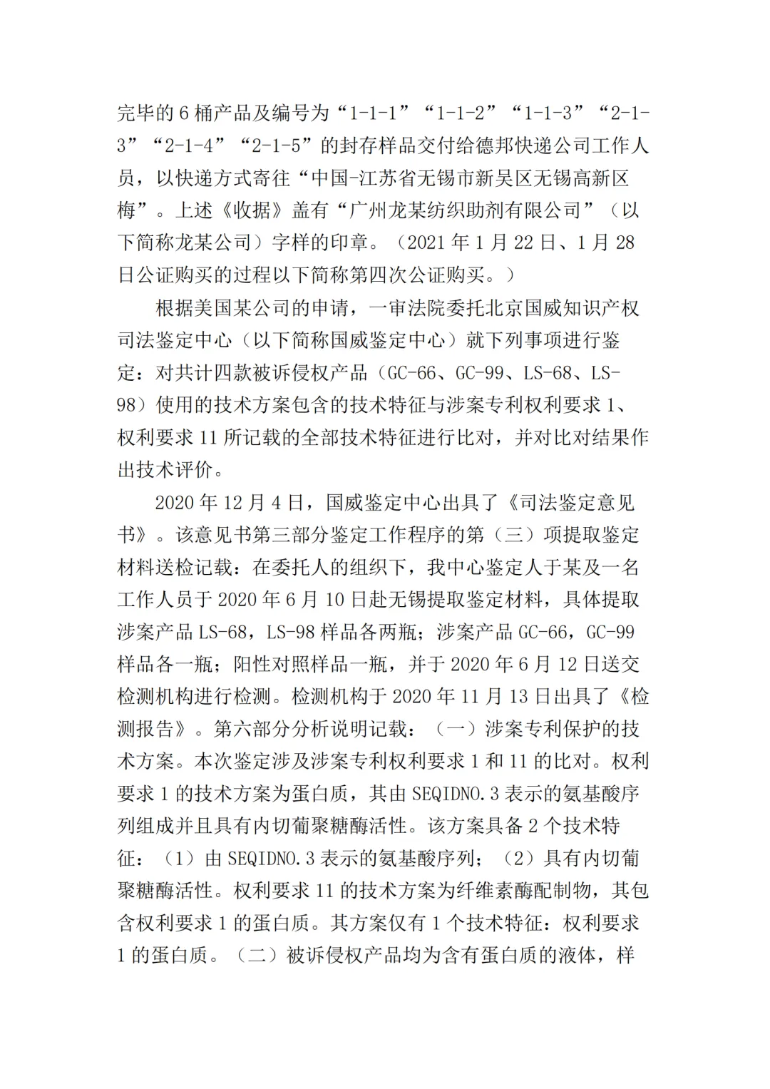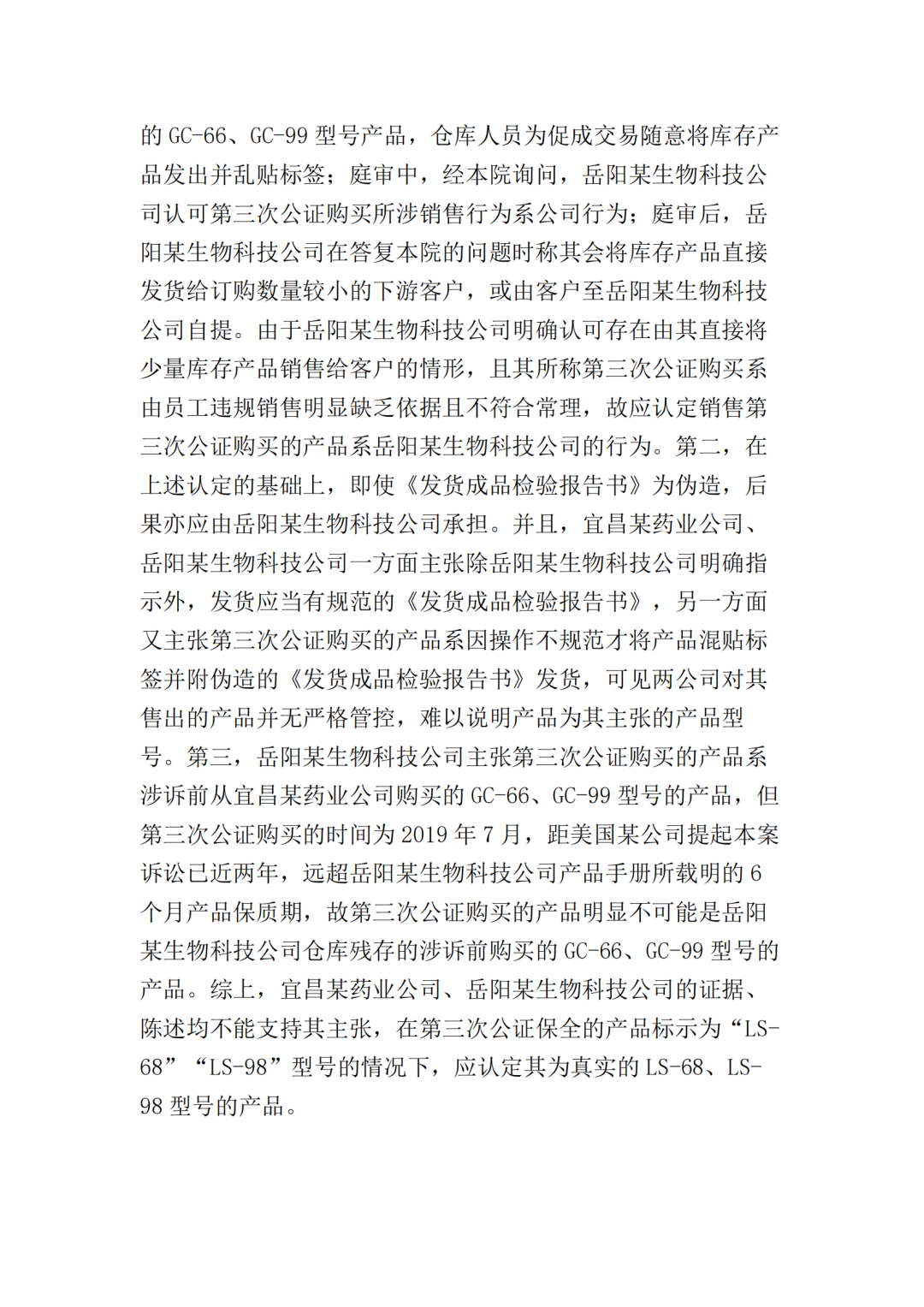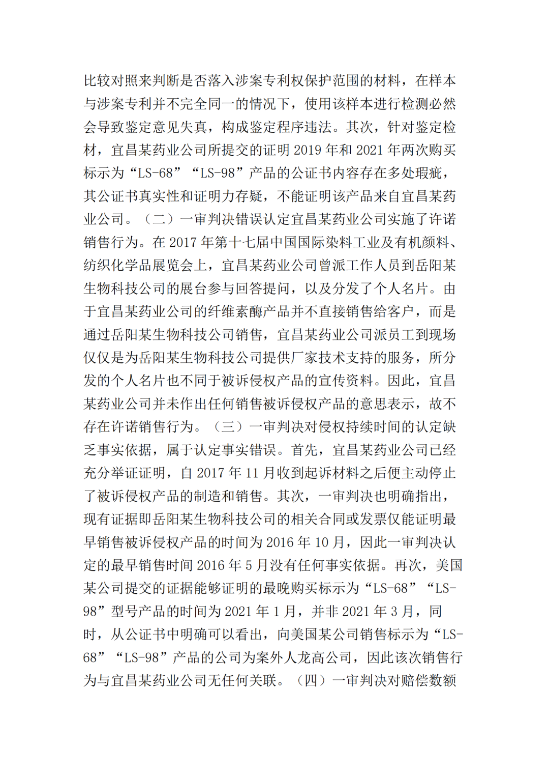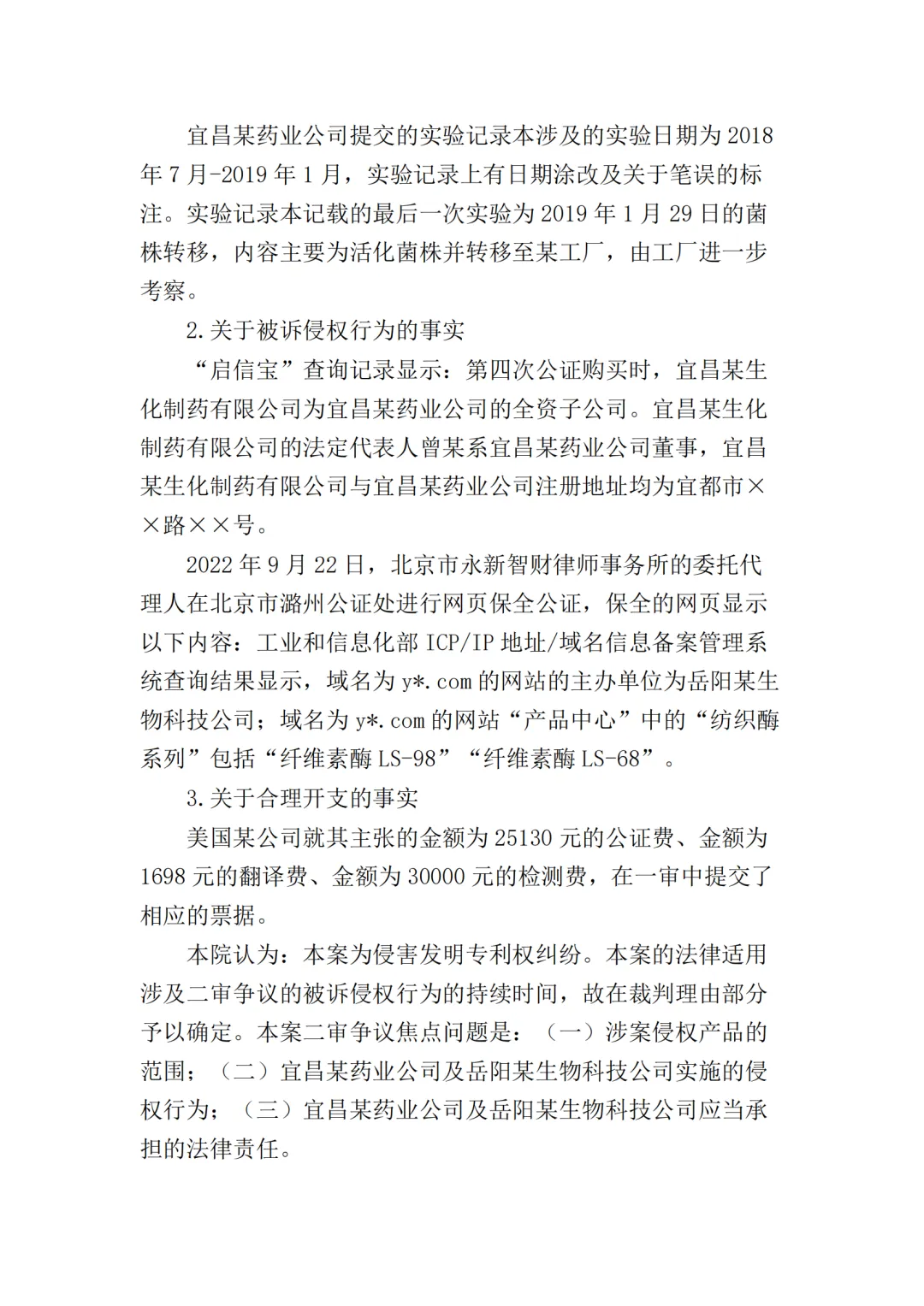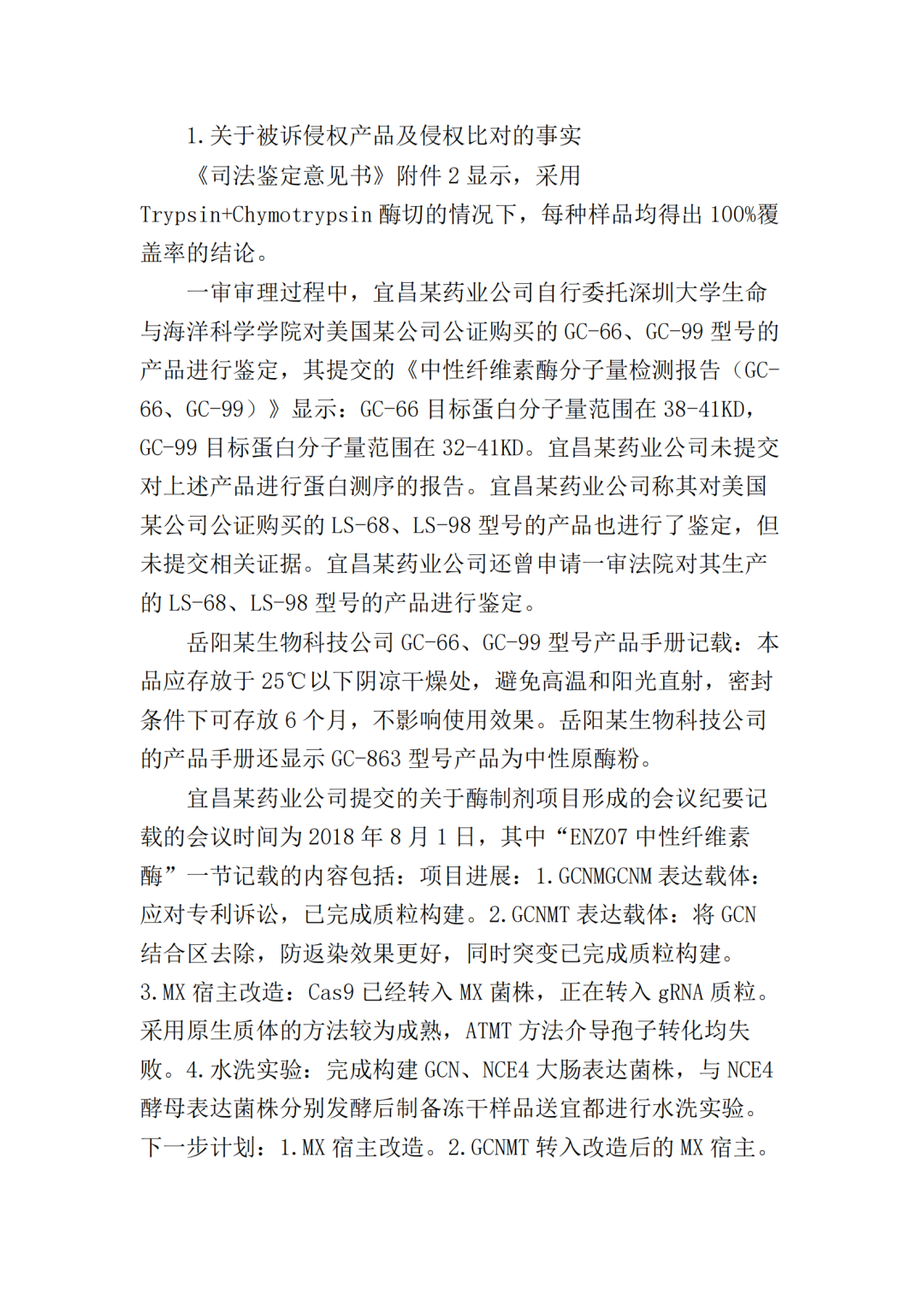在二审中,法院认为依据在案证据,不能将美国某公司主张的所有型号的纤维素酶或宜昌某药业公司生产的所有纤维素酶都认定为侵权产品,但可以认定涉案侵权产品的范围包括但不限于GC-66/99/863、LS-68/98/868型号的产品。