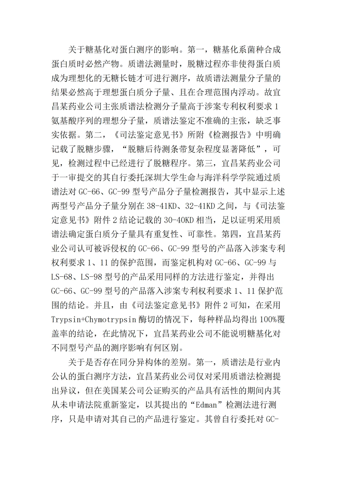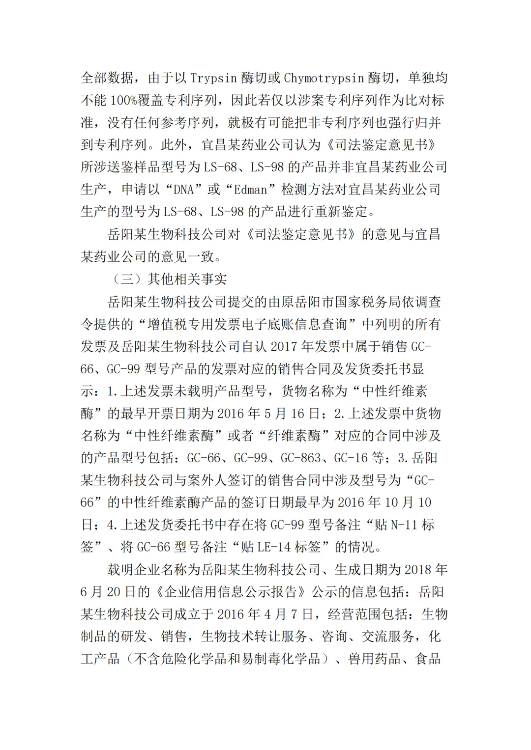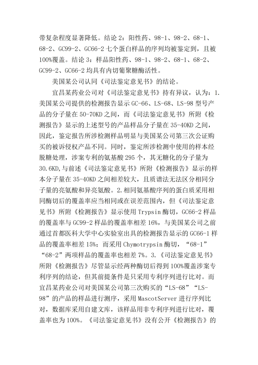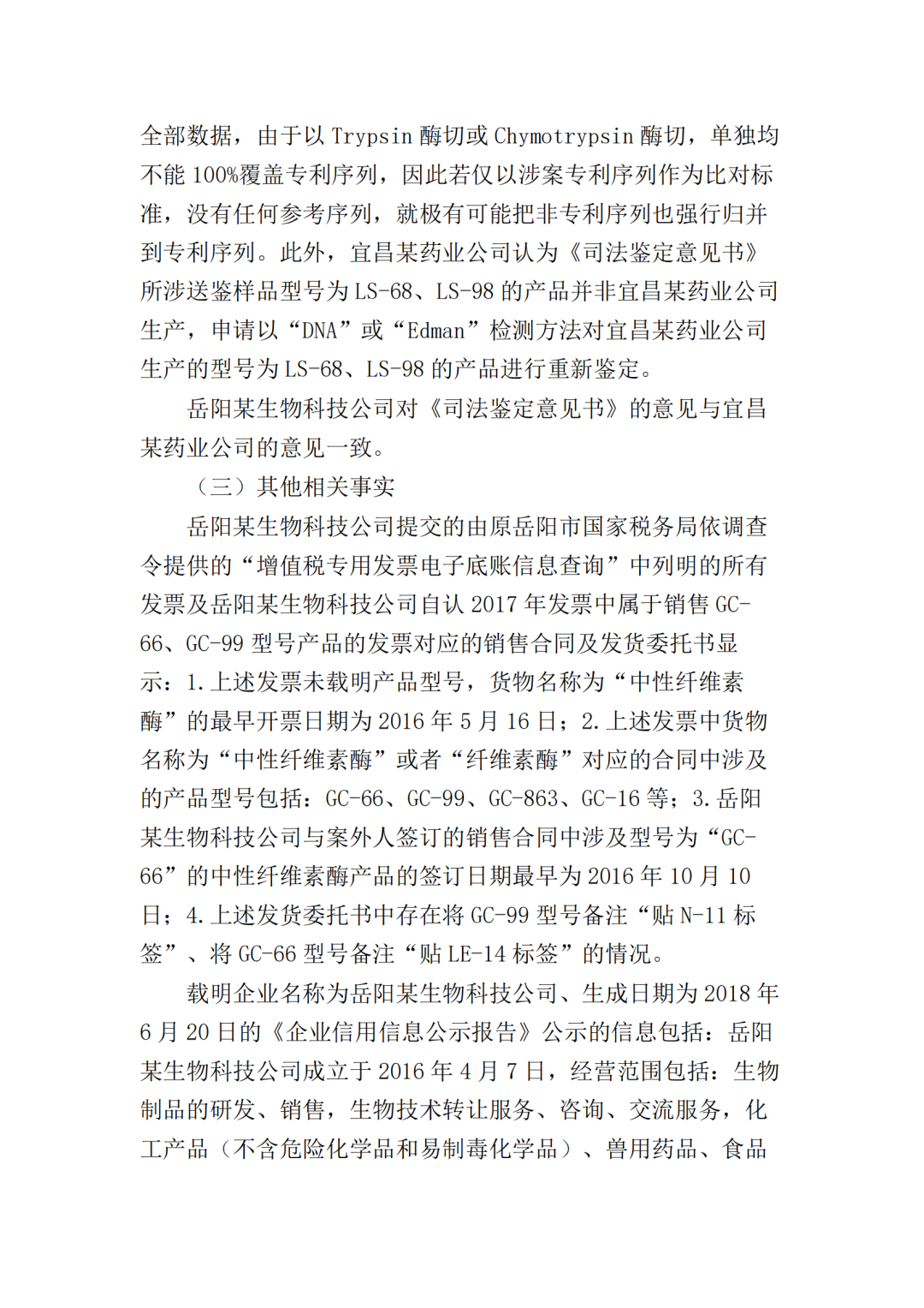 在二审中,法院认为依据在案证据,不能将美国某公司主张的所有型号的纤维素酶或宜昌某药业公司生产的所有纤维素酶都认定为侵权产品,但可以认定涉案侵权产品的范围包括但不限于GC-66/99/863、LS-68/98/868型号的产品。