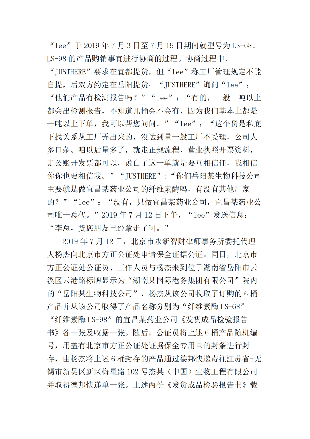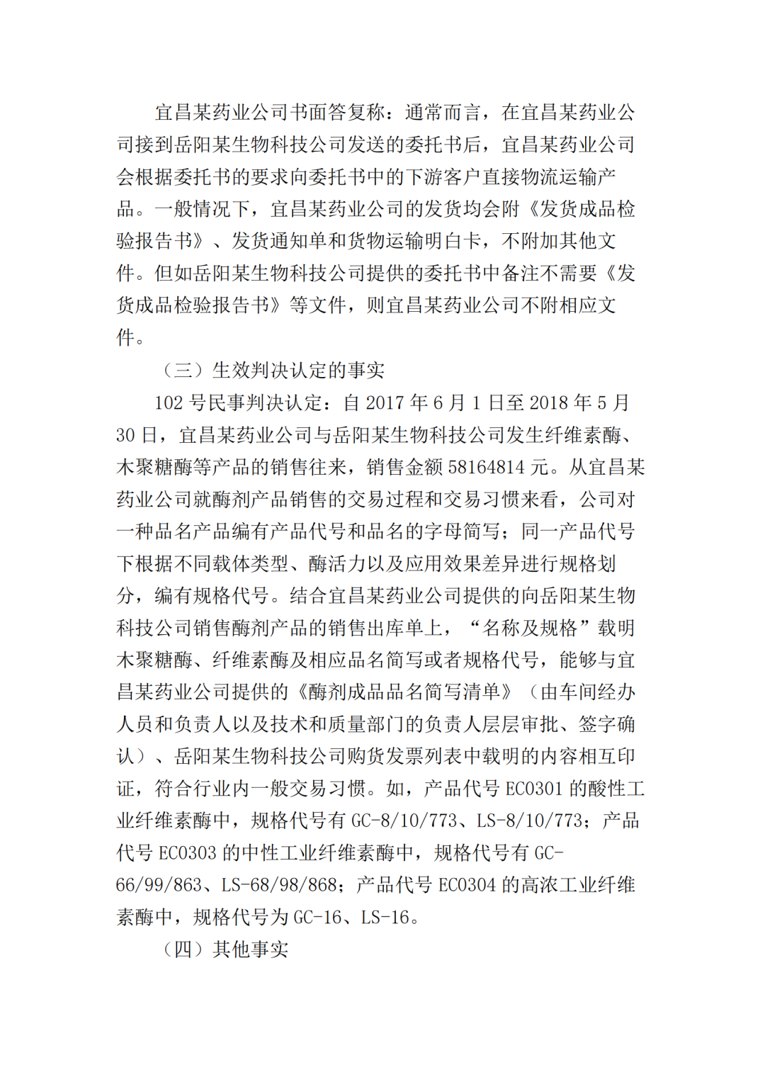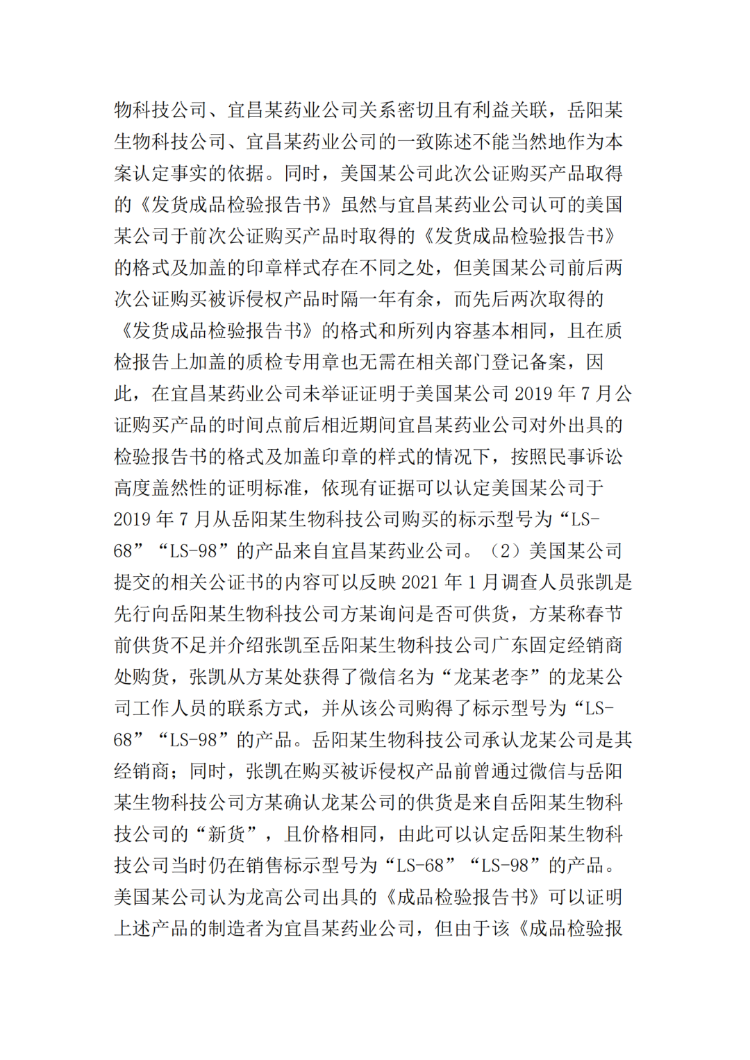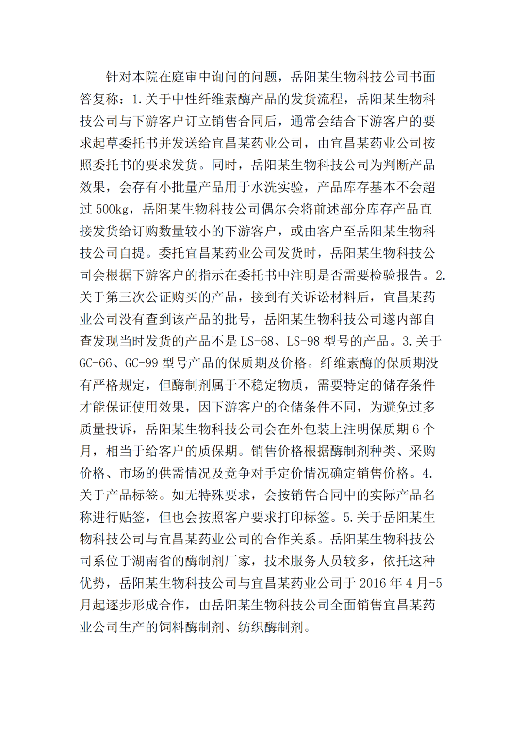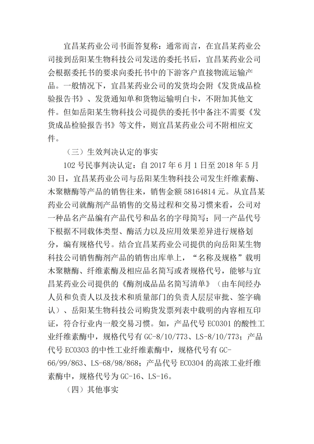 在二审中,法院认为依据在案证据,不能将美国某公司主张的所有型号的纤维素酶或宜昌某药业公司生产的所有纤维素酶都认定为侵权产品,但可以认定涉案侵权产品的范围包括但不限于GC-66/99/863、LS-68/98/868型号的产品。