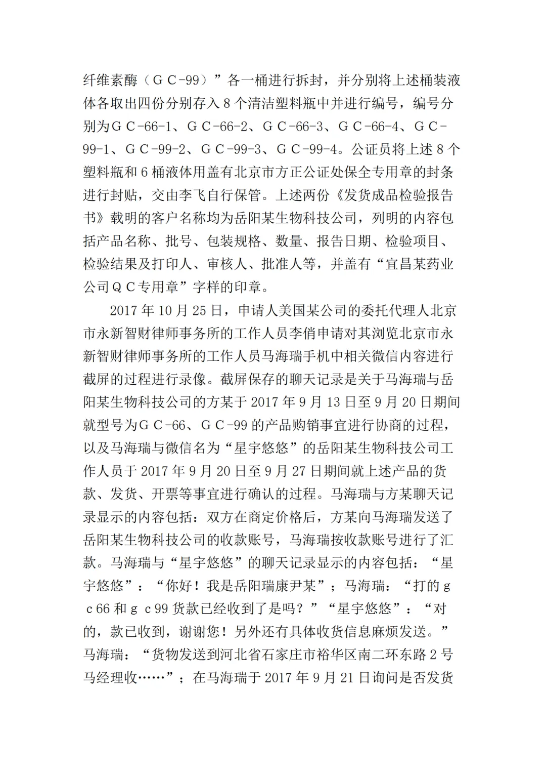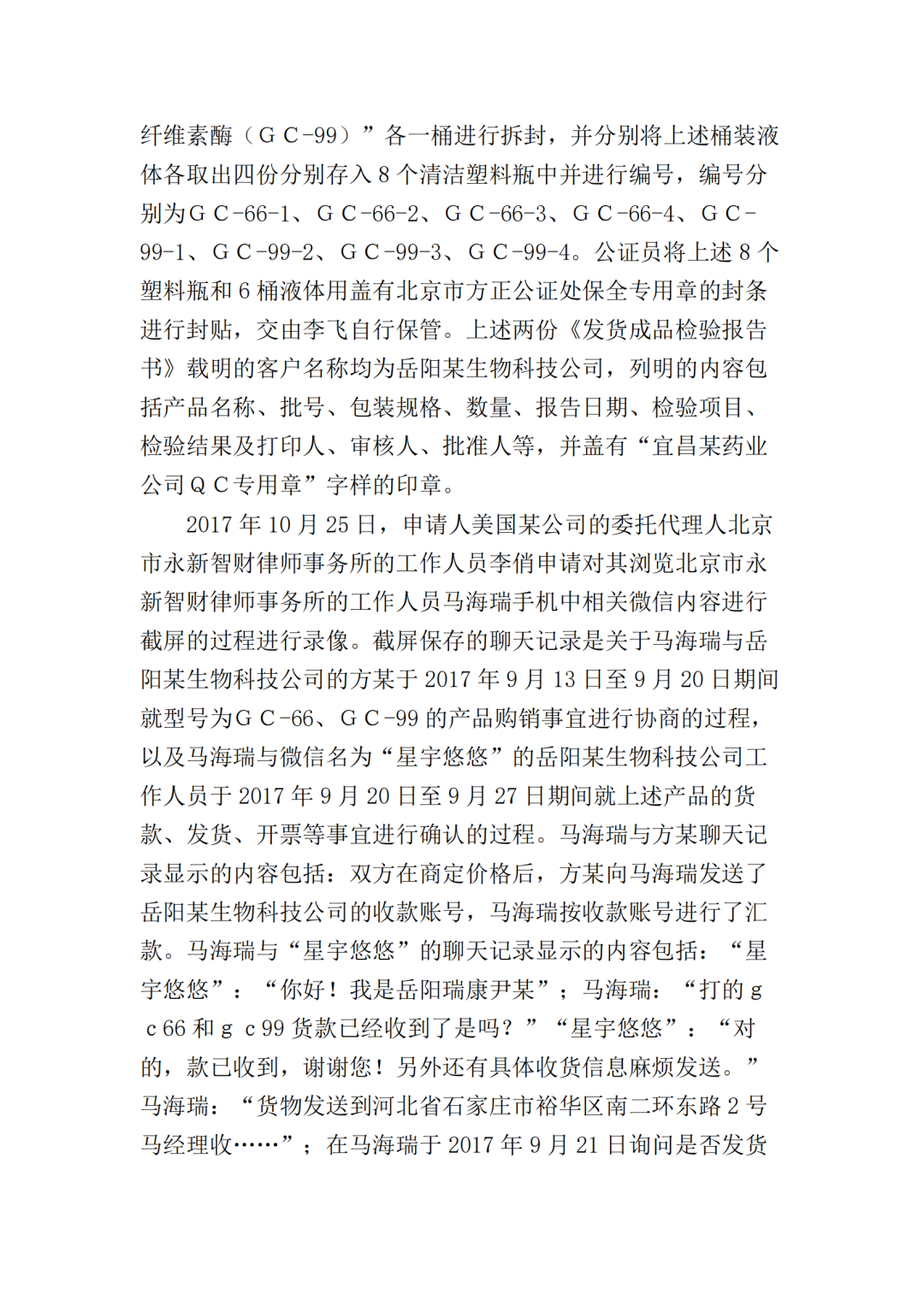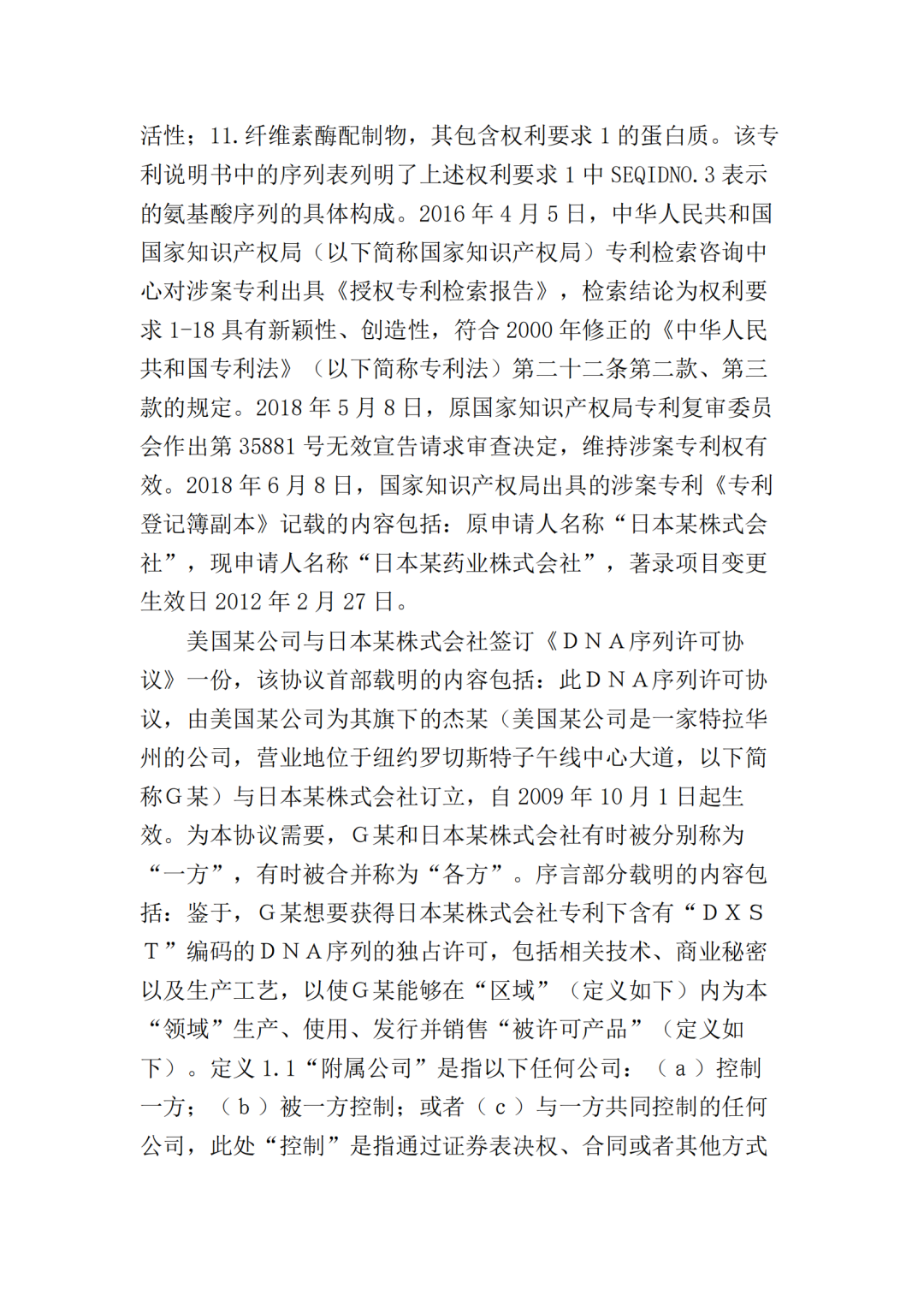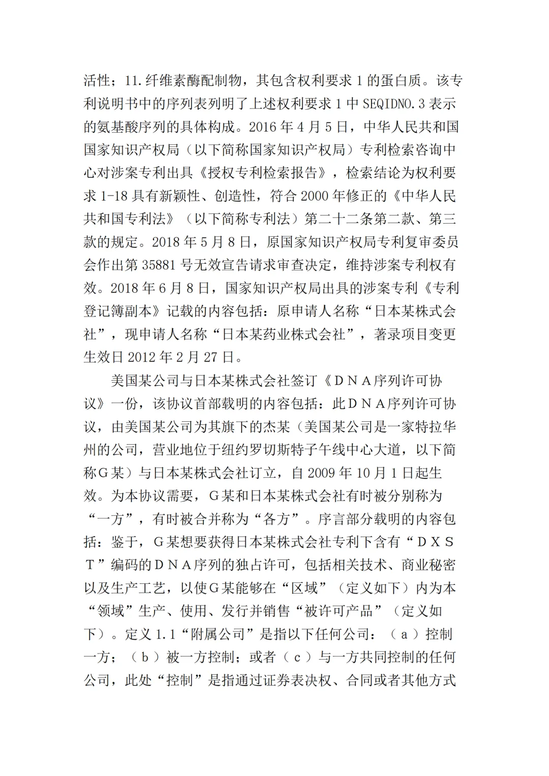 2017年10月25日,美国某公司在上海知识产权法院(下称“一审法院”)发起专利侵权诉讼,指控岳阳某生物科技公司(以下简称“岳阳某生物公司”)、宜昌某药业公司侵犯其第200480036105.7号名称为“内切葡聚糖酶STCE和含有内切葡聚糖酶的纤维素酶配制品”的发明专利,美国某公司请求法院判令: