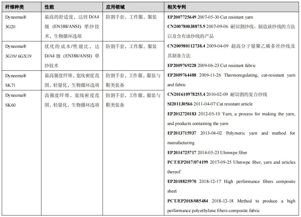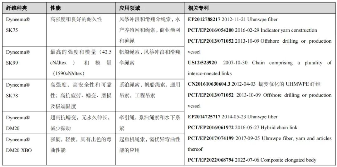 01. Dyneema纤维产品牌号及相关专利技术布局