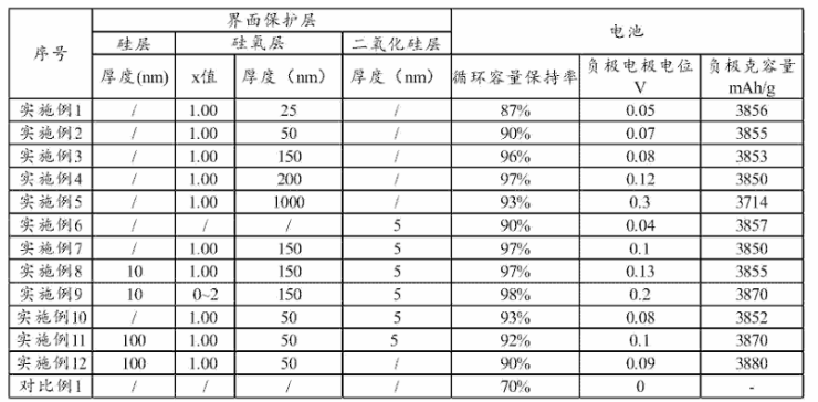 选取厚度为20微米的锂金属,置于PEVCD设备中在Ar气气氛中,通入SiH4、N2O气体,通过控制SiH4与N2O的比例在锂金属层上进行沉积SiOx,开始N2O与SiH4的气流量比例为1:2,沉积时间为2.5min,沉积的SiOx厚度为50nm,然后通过多个步骤将 N2O与SiH4 的比例从 1 : 2 逐步提高到 20 : 1,以形成氧化硅层(SiOx,x ≈ 1,厚度:≈25 纳米)。